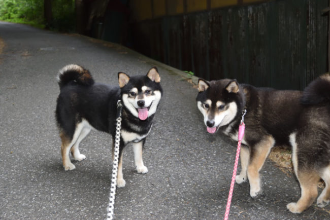 13歳の白柴こむぎちゃんと15歳の黒柴雪菜。